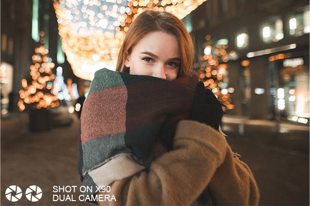 The X90 is stacked with 8+5MP dual rear cameras which takes stunning pictures and video. It captures stunning portraits even in dark conditions.